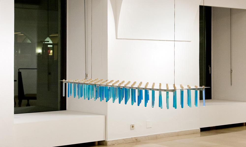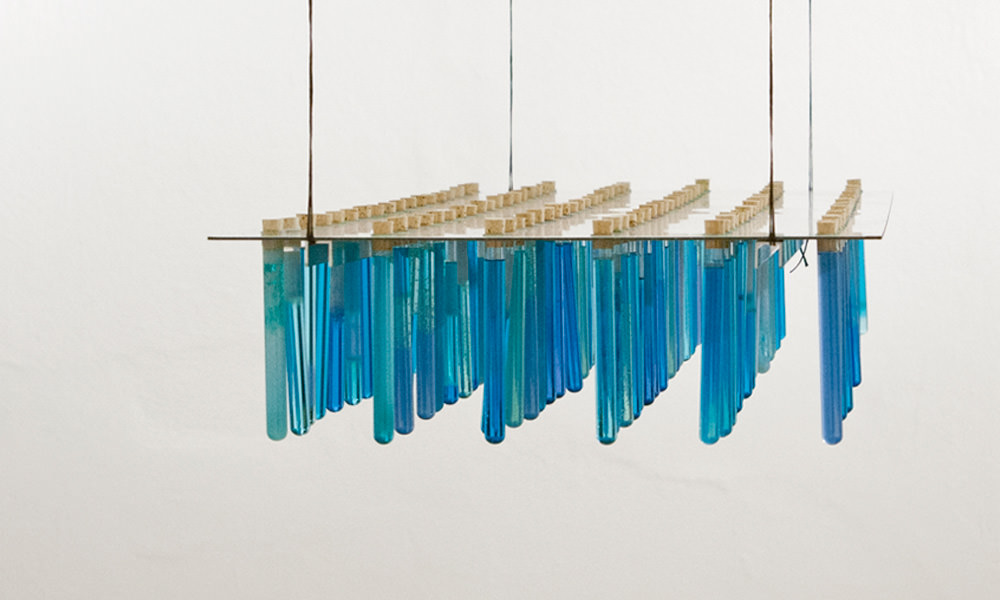 Das Labor als Feld aller Experimente steht diesmal im Dienste der Alltagsforschung. Alle blauen allgemein verfügbaren Haushaltsreinigungsmittel werden vermischt. Denn es geht um die Mischung. Und diese Mischung spricht auch über ihren unverwechselbaren chemischen Ausdünstungen. Eine Duftwolke in der Clusterwolke.