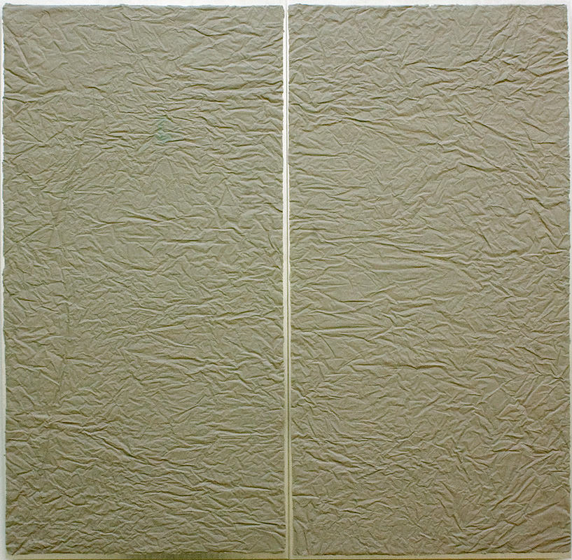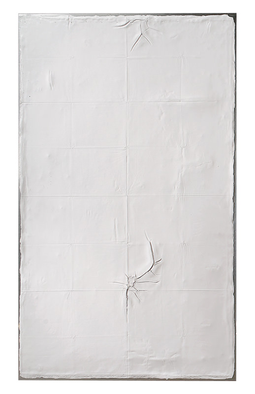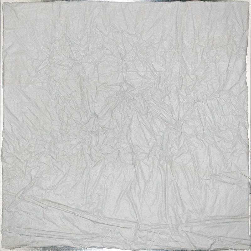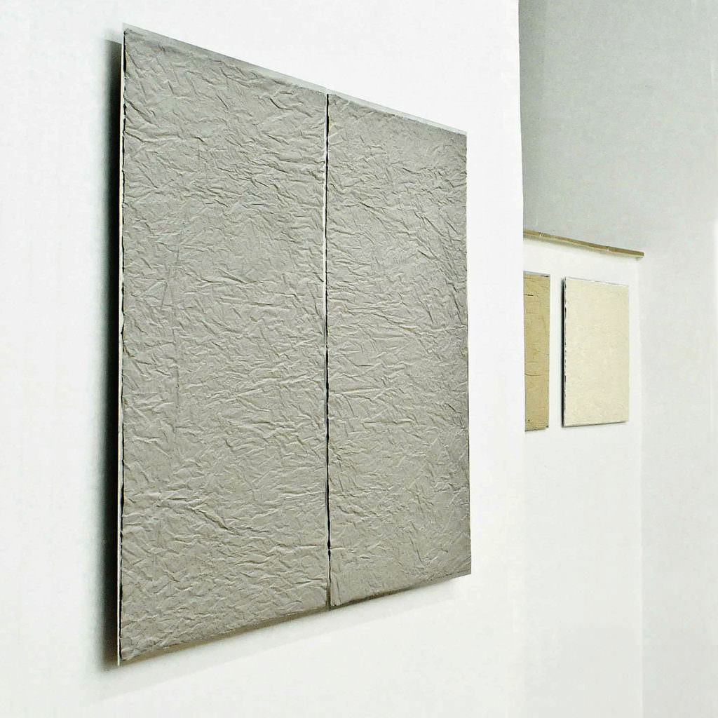 Es sind Farbflächen aus Acryl, die als Abguss von realem Material entstanden sind. Der Ausgangspunkt waren zerknüllte Plastikfolien, das Ergebnis erinnert jedoch stark an zerknittertes Papier, ein Effekt, der durch die hellen Farbtönungen noch verstärkt wird. Wieder aufgebreitet, glatt gestrichen und flach aufgebreitet erscheinen die Arbeiten wie strahlende Projektionsflächen alter und neuer Erinnerungen. Das was „Aufgehoben“ oder „Verworfen“ wurde, wird durch den künstlerischen Umwandlungsprozess wieder sichtbar gemacht.