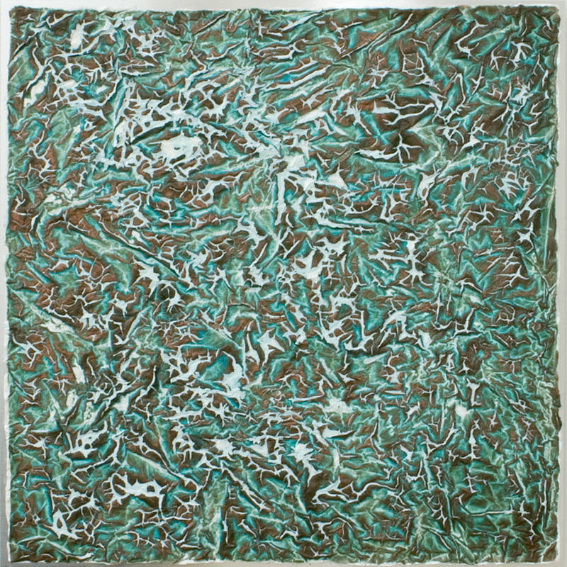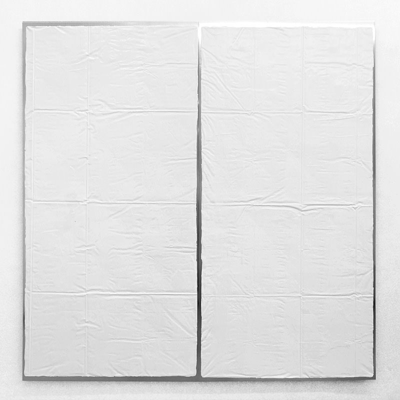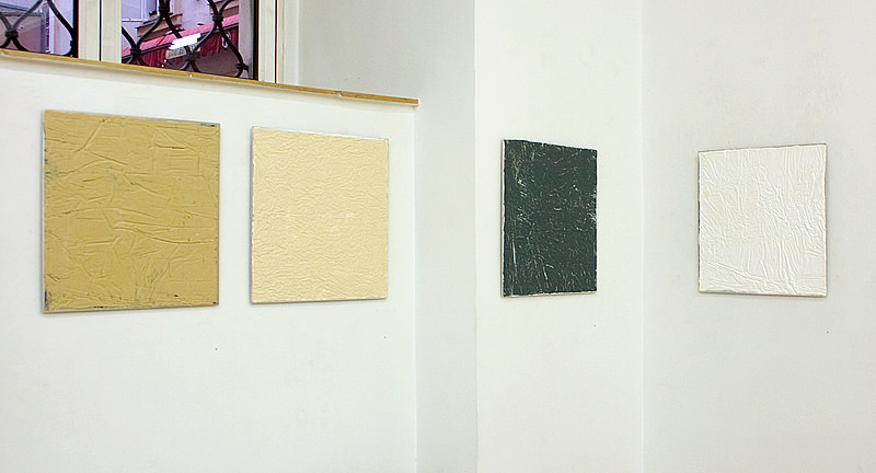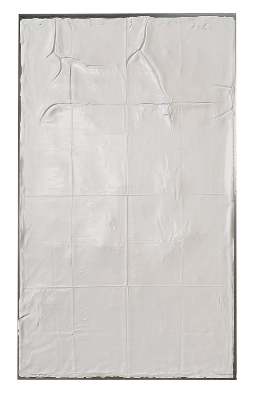 Acrylfarbe wird in diesen Arbeiten als Abgussmaterial verstanden. Plastikfolien, die in einem bestimmten Format ursprünglich gefalten (aufgehoben, gestapelt, geordnet) wurden, dienen als Formgeber der Bildobejkte. Mit Acrylfarbe werden die Falten und Brüche der Folie abgegossen. Der Prozess lässt neben den klar ersichtlichen, bestimmenden orthogaonalen Raster auch unvorhersehbare Risse entstehen, die als die dem Material Acryl innenwohnenden Eigenschaften deutlich bestehen bleiben. Die Arbeitenn verstehen sich als Auseinandersetzung mit dem Prinzipien Ordnung und Überfluß.